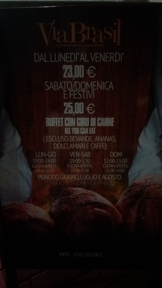 Welcome to Via Brasil Ristorante, a hidden gem nestled in Brescia, Italy, where the essence of Brazilian dining comes alive! This vibrant eatery is celebrated for its delectable selection of meats and warm, friendly service. Guests rave about the high-quality cuts of meat, complemented by an extensive buffet of fresh vegetables and side dishes, available for unlimited refills. It's a perfect spot for friends to gather and celebrate over hearty meals.